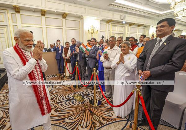 மோடியை வரவேற்கும் இந்திய வம்சாவளியினர்.