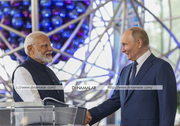 ரஷ்யாவின் உயரிய விருதான செயின்ட் ஆண்ட்ரூ தி அபோஸ்த்லே விருதை பிரதமர் மோடிக்கு வழங்கி கவுரவித்த அதிபர் புடின்.