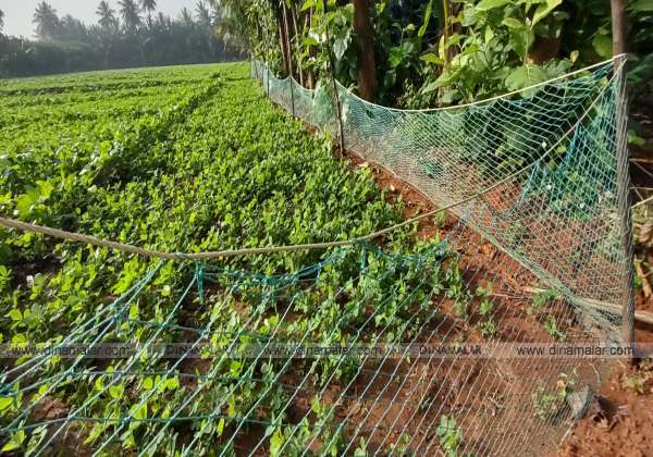 கடலூர் எஸ். புதூர் பகுதியில் மணிலா பயிர் செய்யப்பட்டுள்ள நிலத்தில் காட்டு பன்றிகள் உள்ளே வராமல் இருக்க தடுப்பு வேலி அமைத்துள்ளனர்.