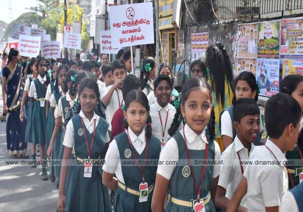 கோவை மாநகர போக்குவரத்து போலீசார் சார்பில் சாலை பாதுகாப்பு குறித்த விழிப்புணர்வு பேரணியில் கலந்து கொண்ட மாணவிகள். இடம்: கோவை, டவுன்ஹால்.