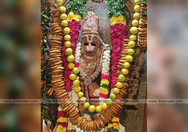 தேவகோட்டை ரங்கநாத பெருமாள் கோயிலில் வெற்றி தரும் ஆஞ்சநேயருக்கு சந்தனக்காப்பு வடைமாலையுடன் அலங்காரத்தில் அருள்பாலித்தார்