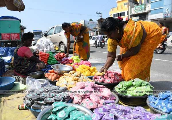 பொள்ளாச்சி பகுதியில் பொங்கல் பண்டிகையை முன்னிட்டு கலர் கோலப்பொடிகளை ஆர்வமாக வாங்கும் மக்கள்.