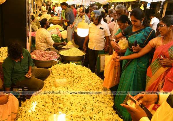 பொங்கல் பண்டிகை முன்னிட்டு கோவை பூ மார்க்கெட்டில் கலை கட்டிய பூ வியாபாரம்.
