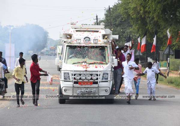 திண்டிவனத்துக்கு வருகை தந்த அமமுக பொதுச்செயலாளர் தினகரனை கட்சி நிர்வாகிகள் மலர் தூவி வரவேற்றனர்.