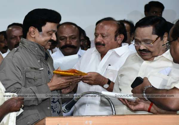 தமிழ்நாட்டிற்க்கு புதிய தொழில் முதலீடுகளை ஈர்ப்பதற்க்காக வெளிநாடு செல்லும் முதல்வர் ஸ்டாலினுக்கு பொன்னாடை வழங்கிய அமைச்சர்கள் .இடம் : சென்னை விமான நிலையம்