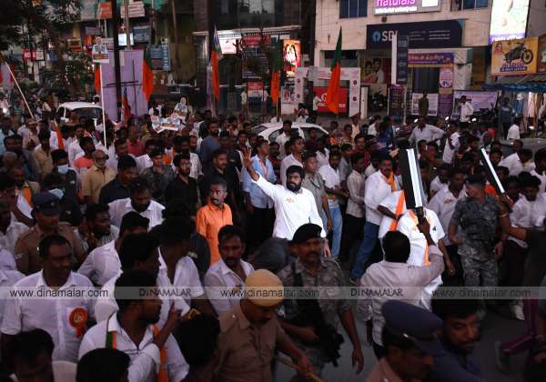 விழுப்புரத்தில் என் மண் என் மக்கள் யாத்திரை நிகழ்ச்சியில் மாநில தலைவர் அண்ணாமலை மக்களை சந்தித்து ஊர்வலமாக சென்றார்.