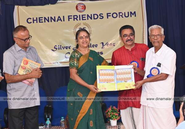 சென்னையில் , சென்னை பிரண்ட்ஸ் போரம் வெள்ளி விழா நடைபெற்றது. விழாவில் சிறப்பு தபால் தலையினை முன்னாள் துணைவேந்தர் சுதா சேஷையன் வெளியிட செயலாளர் ராமமூர்த்தி பெற்றுக் கொண்டார் இடமிருந்து தலைவர் பாலசுப்பிரமணியம் மற்றும் ரமண குமார்