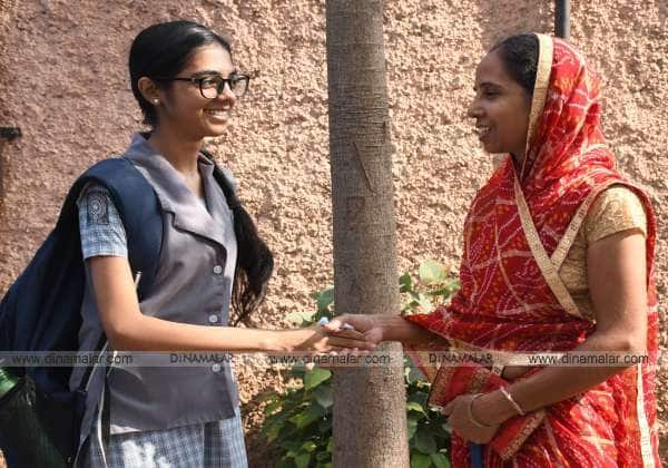 2 பொதுத்தேர்வு எழுதுவதற்கு முன்பு தாயுடன் ஆசீர்வாதம் பெற்று செல்லும் மாணவி. இடம்: லேடி வேல்லிங்டன் மேல்நிலைப்பள்ளி, திருவல்லிக்கேணி.