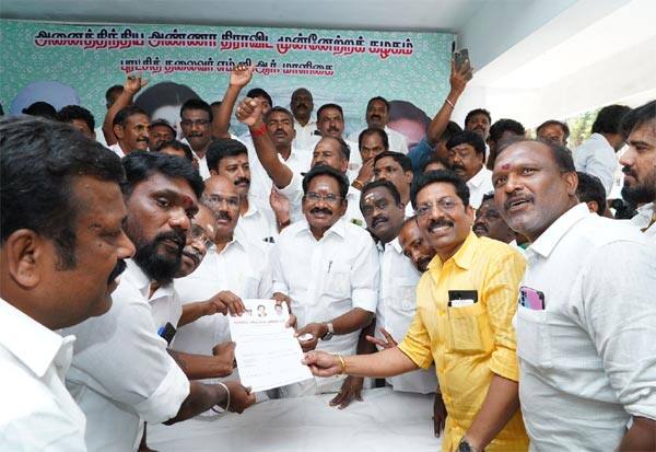 மதுரை லோக்சபா தொகுதியில் அதிமுக சார்பில் போட்டியிடுவதற்கான விருப்ப மனுவை அக்கட்சியின் மாநில மருத்துவ அணி இணை செயலாளர் டாக்டர் சரவணன் அதிமுக தலைமை அலுவலகத்தில் முன்னாள் அமைச்சர்கள் ஜெயக்குமார், செல்லூர் ராஜு ஆகியோரிடம் வழங்கினார்.
