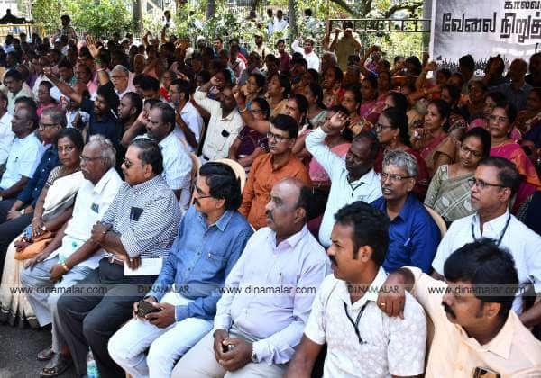 சென்னை பல்கலையின் நிதி பிரச்சனைக்கு தீர்வு காண வலியுறுத்தி பல்கலை ஆசிரியர்கள், மற்றும் பணியாளர்கள் காலவரையற்ற வேலை நிறுத்தத்தை துவங்கினர். இடம். சென்னை பல்கலை வளாகம்.