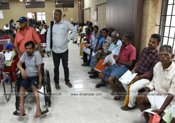 திருப்பூர் கலெக்டர் அலுவலகத்தில் மாற்று திறனாளி பதிவு முகாம் நடந்தது. அதில் பங்கேற்றவர்கள்.