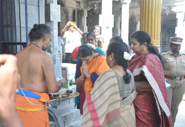 முதல்வர் ஸ்டாலின் மனைவி துர்கா, சேலம் சுகவனேஸ்வரர் கோயிலில் சுவாமி தரிசனம் செய்தார்.