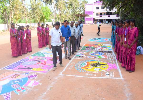 விருத்தாச்சலம் விருதாம்பிகை ஐ.டிஐ.யி.ல் நடந்த வாக்காளர் விழிப்புணர்வு ரங்கோலி போட்டியை துணை தாசில்தார் கோவிந்தன் கல்லூரி நிர்வாக இயக்குனர் ரஞ்சித் பார்வையிட்டனர்.