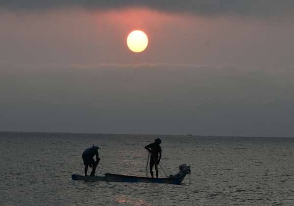காலை சூரிய உதயத்தின் போது மீனவர்கள் மீன் பிடிக்கும் காட்சி இடம் பட்டினம்பாக்கம் கடற்கரை