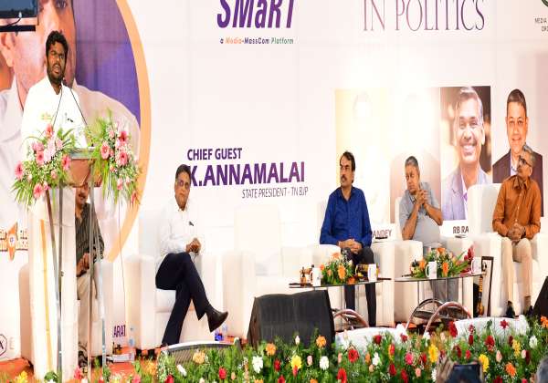 கோவை வரதராஜபுரத்தில் உள்ள சாய் விவேகா ஹாலில் வல்லுநர்களின் அரசியல் தலைப்பில் கலந்துரையாடல் நிகழ்ச்சியில் அண்ணாமலையின் திருப்புமுனை புத்தகம் வெளியிட்டு விழா நடந்தது. இதில் பா.ஜ., மாநிலத் தலைவர் அண்ணாமலை பேசினார். இடமிருந்து வலம் நிகழ்ச்சி ஒருங்கிணைப்பாளர் முத்துராமன், ஜனனம் நிர்வாக இயக்குனர் முரளி, செஸ் கோச் ரமேஷ், சாணக்யா நிர்வாக இயக்குனர் ரங்கராஜ் பாண்டே,நூலாசிரியர் சுரேஷ்குமார் பதிப்பாளர் பத்ரி சேஷாத்திரி உள்ளிட்டோர்.
