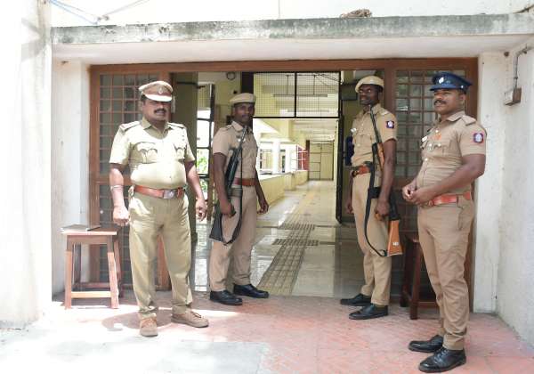 குரோம்பேட்டை எம்ஐடி கல்லூரி வளாகத்தில் ஸ்ரீபெரும்புதூர் தொகுதிகளின் வாக்குப்பதிவு இயந்திரங்கள் வைக்கப்பட்ட அறைகளுக்கு சீல் வைக்கப்பட்டு மத்திய துணை ராணுவ படை வீரர்கள் பாதுகாப்பு பணியில் ஈடுபட்டனர்