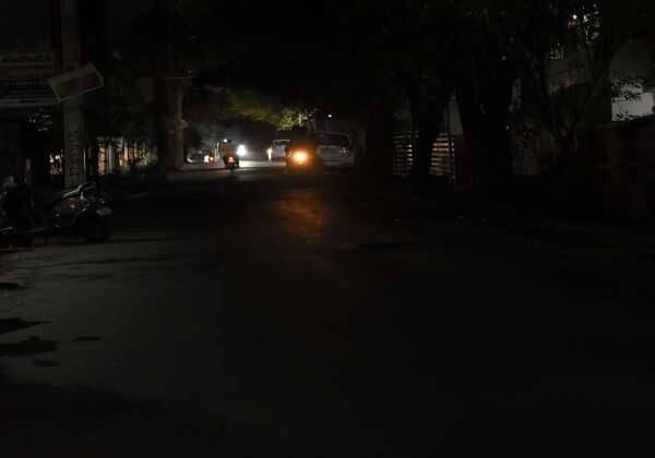தேனி சமதர்மபுரம் காமராஜர் பூங்கா அருகே ரோட்டில் மின்விளக்கு எரியாததால் இருள் சூழ்ந்து காணப்படுகிறது.