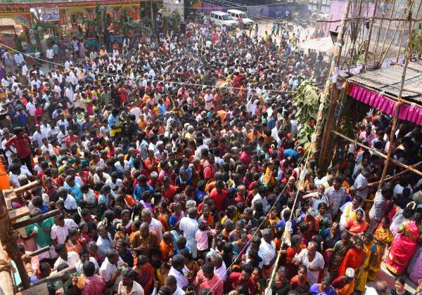 திண்டிவனம் அடுத்த தீவனூர் பொய்யாமொழி விநாயகர் கோயிலில் கும்பாபிஷேக விழாவில் கலந்து கொண்ட பக்தர்கள் கூட்டம் .