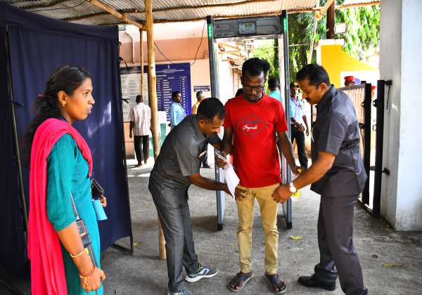 புதுச்சேரி பாரதிதாசன் மகளிர் கல்லூரியில் நடந்த தேசிய பாதுகாப்பு அகாடமி தேர்வுக்கு வந்தவர்களை போலீசார் தீவிர பரிசோதனைக்கு பின் தேர்வு எழுத அனுமதித்தனர்.