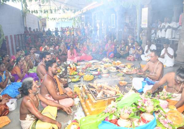 சித்ரா பவுர்ணமியை முன்னிட்டு உடுமலை பிரசன்ன விநாயகர் கோயிலில் நடந்த விசாலாட்சி அம்மன் திருக்கல்யாண விழாவில் கலந்து கொண்ட பக்தர்கள் .