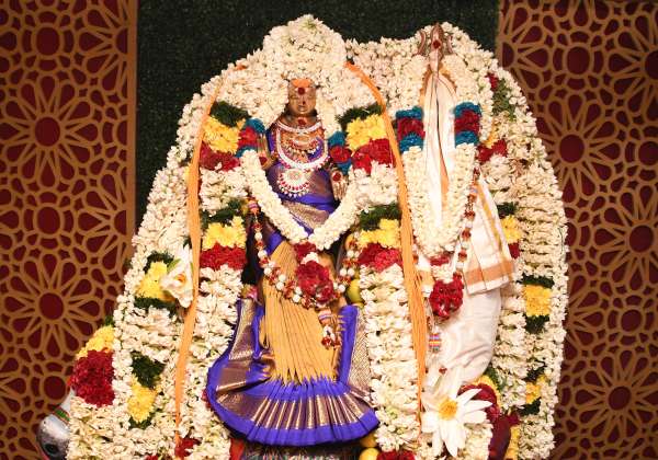 சித்ரா பவுர்ணமியை முன்னிட்டு உடுமலை பிரசன்ன விநாயகர் கோயிலில் நடந்த திருக்கல்யாண விழாவில் விசாலாட்சி அம்மன் திருமணகோலத்தில் அருள்பாலித்தார்.