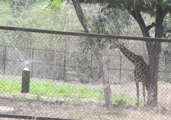 வண்டலூர் உயிரியல் பூங்காவில் தனியாக நிற்கும் ஒட்டகச்சிவிங்கி