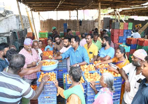 உடுமலை நகராட்சி மொத்த சந்தையில் 14 கிலோ தக்காளி பெட்டி ரூ. 300க்கு ஏலம் போனது.
