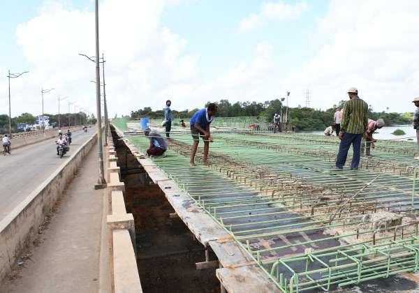 விழுப்புரம் ஜானகிபுரம் புதுச்சேரி நாகப்பட்டினம் தேசிய நெடுஞ்சாலையில் கடலூர் சாவடி அருகே தென்பெண்ணை ஆற்றின் குறுக்கே மேம்பாலம் அமைக்கும் பணி நடைபெற்று வருகிறது.
