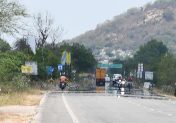திருப்பதி திருத்தணி தேசிய நெடுஞ்சாலையில் கானல் நீர் தென்பட்டது.