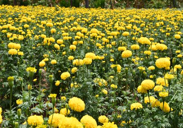 திண்டுக்கல் அருகே அணைப்பட்டி பகுதியில் பூத்துக் குலுங்கும் செவ்வந்தி பூக்கள்.