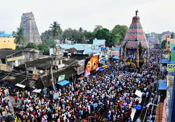 புதுச்சேரி அடுத்த வில்லியனூர் புகழ்பெற்ற திருக்காமீஸ்வரர் கோயில் பிரம்மோற்சவ விழாவில் தேரோட்டம் நடந்தது.