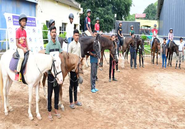 தினமலர் நாளிதழ் அலெக்சாண்ட்ர் ஈக்வேஸ்டிரியன் கிளப் மற்றும் ஈகுவைன் ட்ரீம்ஸ் சார்பில் நடக்கும் கோடைகால இலவச குதிரை ஏற்ற பயிற்சி முகாமில் பங்கேற்ற சிறுவர்கள்.