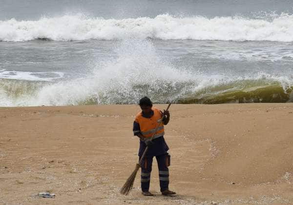 வானிலை மாற்றத்தால், வழக்கத்தை விட கடல் கொந்தளிப்புடன் காணப்பட்டது. இடம் : திருவான்மியூர்.