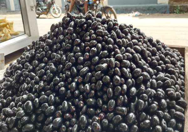 தேனி என்.ஆர்.டி., ரோட்டில் விற்பனைக்கு குவித்து வைக்கப்பட்டிருந்த நாவல் பழங்கள்.