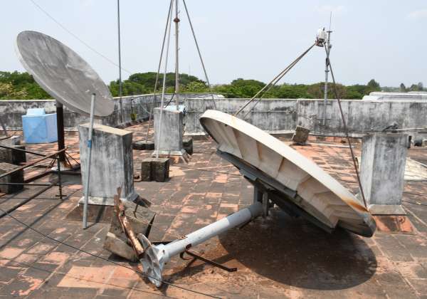 திருவள்ளூர் கலெக்டர் அலுவலகத்தின் மாடியில் உள்ள டிஷ் ஆண்டனா உடைந்து காணப்படுகிறது