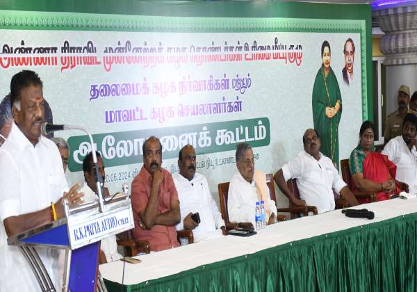 முன்னாள் முதல்வர் பன்னீர்செல்வம் தலைமையில் அ.தி.மு.க தொண்டர்கள் உரிமை மீட்பு குழு ஆலோசனைக் கூட்டம் நடந்தது.இடம்: ராயப்பேட்டை, சென்னை.