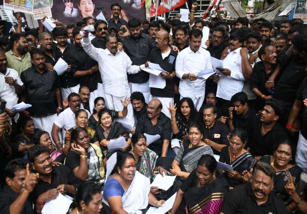 கள்ளக்குறிச்சி கள்ளசாராயம் மரண சம்பவத்தை கண்டித்து, அ.தி.மு.க.,வினர் கண்டன ஆர்ப்பாட்டத்தில் ஈடுபட்டனர். இடம்: கலெக்டர் அலுவலகம், பிராட்வே, சென்னை.