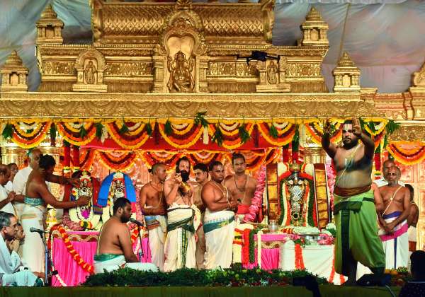 புதுச்சேரி லாஸ்பேட்டை ஹெலிபேடு மைதானத்தில் புதுச்சேரி ஸ்ரீ வாரி திருக்கல்யாண சேவா டிரஸ்ட் மற்றும் திருமலை திருப்பதி தேவஸ்தானம் சார்பில் ஸ்ரீநிவாச திருக்கல்யாண உற்சவம் நடந்தது.