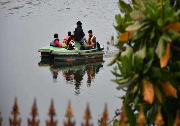 சேத்துப்பட்டு பசுமை பூங்காவில் படகு சவாரி செய்து மகிழ்ந்த பொதுமக்கள். இடம்: சென்னை.